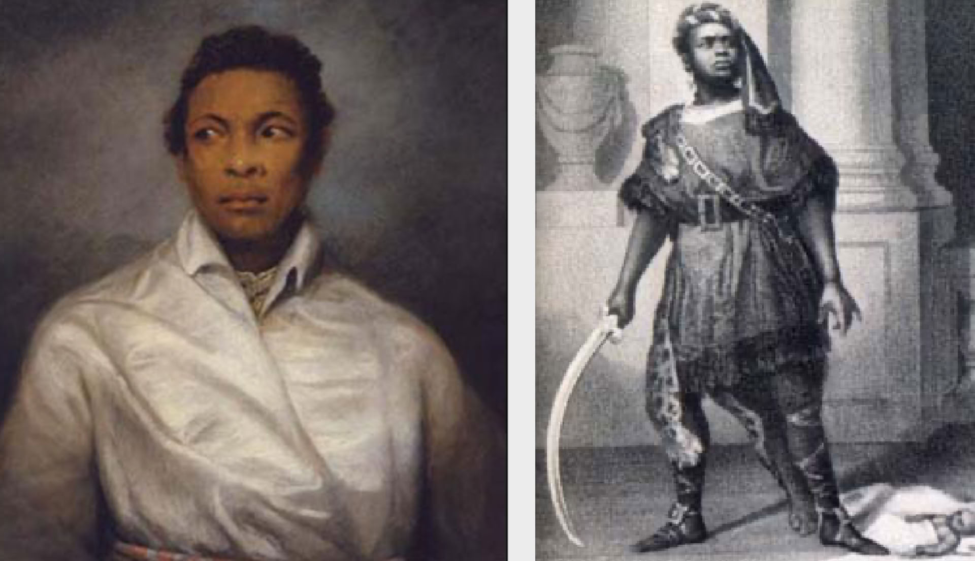 BIOGRAPHY OF A THESPIAN: Ira Aldridge was the first black actor to play William Shakespeare’s Othello in 1826. He also played many other of Shakespeare's leading roles. Above left; Aldridge as Aaron in Titus Andronicus, c. 1852. Above right; A portrait of Ira Aldridge as Othello, painted by James Northcote in 1826.