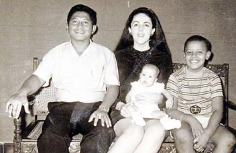 FAMILY RECORD: Obama's parents, Barack Obama Sr and Ann Dunham (now deceased), pose at Honolulu airport, Hawaii; Barack Obama Sr. poses with his son at Honolulu airport; Obama's mother with her Indonesian second husband, Lolo Soetoro, their daughter Maya, and young Barack, in Jakarta, Indonesia, in the 1970s.